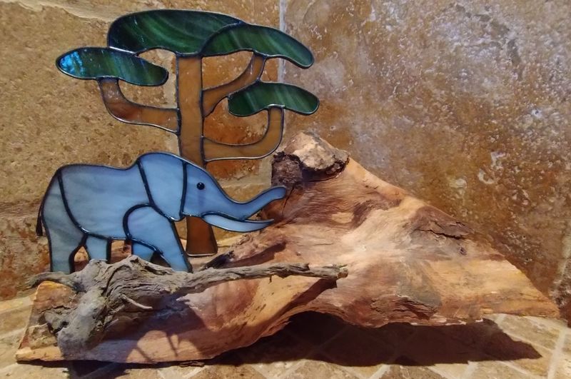 Stained glass Elephant & Tree